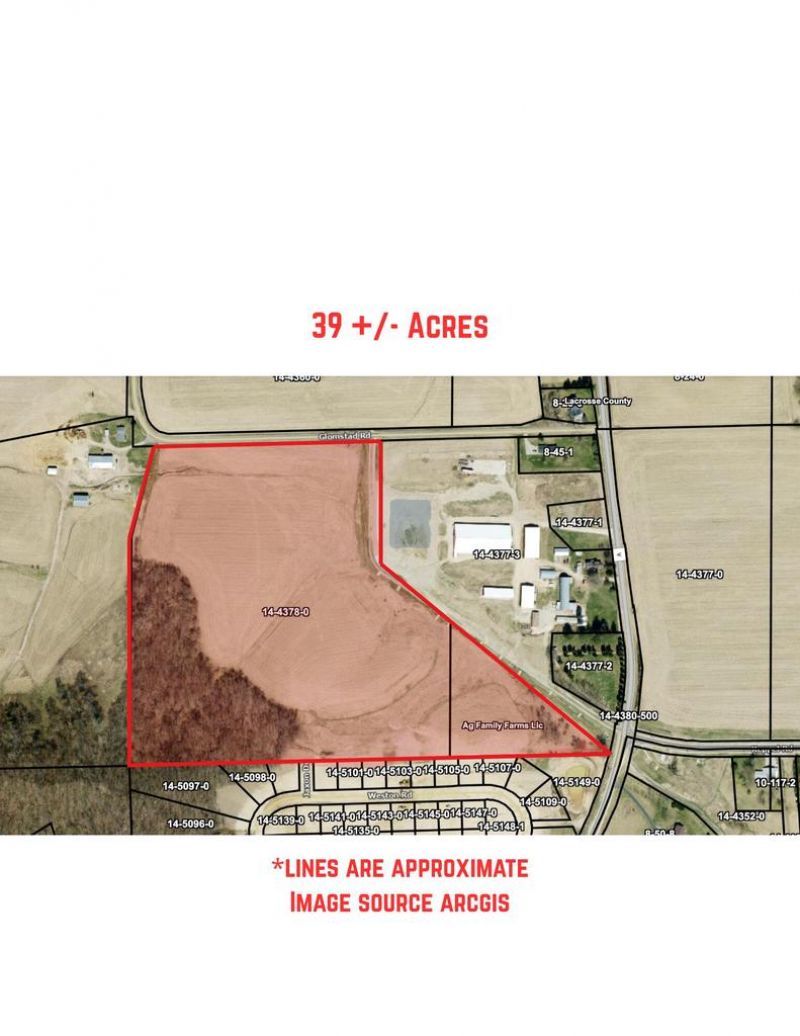 Prime development opportunity in booming Holmen! 39.5+/- acres of land that has already been approved for Single Family Home development by village. Village is in the process of running water and sewer out to land as we speak! Land is setup well for a fantastic subdivision and will also feature public walking trails. Seller to have former manure pit filled with DNR supervision/approval. Seller also has surrounding development acreage that he would be willing to include if buyer desires, ask listing agent for more information. Holmen is only growing, now is the time to seize a great development opportunity!Buyer to verify all utilities, zoning, and measurements OR building requirements