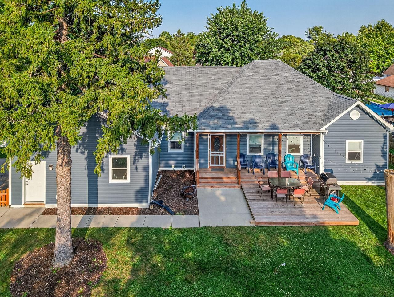 Stunning 4 Bedroom, 3 Bath home is just a short walk from downtown Lake Geneva. Built in 2017 this home boasts a split-bedroom design for ultimate privacy. The open concept living area flows seamlessly into a gourmet kitchen with a large island w/wine cooler and extra seating, great for entertaining. Main floor also features a bright and cheery laundry room, 3 spacious bedrooms including a primary suite, with a luxe en-suite bath. The fully finished basement boasts a large Rec Room, plus a 4th Bedroom and 3rd full bath, which will be great to have when friends or family come to visit. Step outside to a spacious fenced yard with a large deck, ideal for kids, pets, or summer barbecues with room to relax or play.