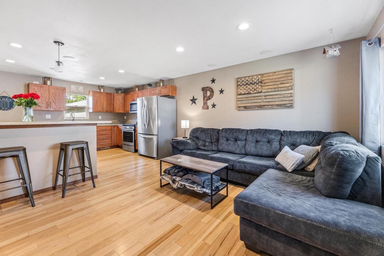 Beautifully maintained and move-in ready 3-bedroom home offering a bathroom on each level for added convenience and flexibility. Gorgeous wood floors flow throughout, and a spacious lower level features a large theater room and bar--perfect for entertaining or relaxing nights in. The kitchen showcases granite countertops and self-closing cabinetry, with a major remodel completed in 2016. Step outside to a fully fenced backyard with a large deck, ideal for gatherings. Additional highlights include solid quality 6-panel wood doors throughout, owned reverse osmosis system, newer washer and dryer, new water heater. Centrally located for easy access to everything!