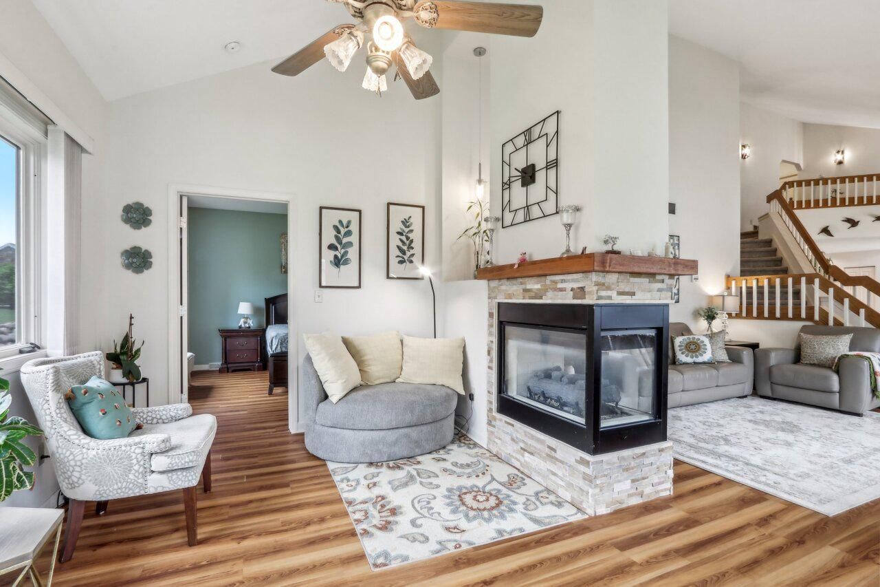Prepare to be impressed! This beautiful New Berlin condo is filled with amenities that make it feel more like a single family home, inside and out! Enter from your private patio and green space into the large living room with wood flooring, gas fireplace, and vaulted ceiling which opens to the kitchen and dining areas. The updated kitchen offers granite countertops and plenty of space for entertaining. Master suite on the first floor features views of the backyard, a huge closet and a dream bathroom. Upstairs, you will find 2 more spacious bedrooms separated by a full bath and a loft office area. The lower level is ready for your rec room furniture today and also has excellent storage. The location is very convenient to schools, shopping, and freeway access. Welcome Home!