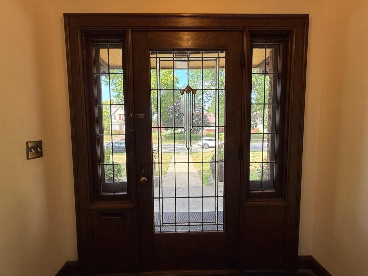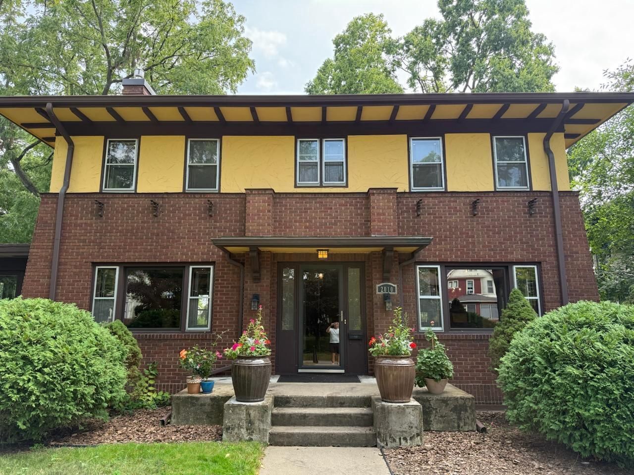 Beautiful historic Marcus Spettel house also known as Voight house in circa 1930s. Ori Sorenson architecture.Four bedroom 2 full bath Prairie School style home gorgeous built-ins, leaded and stained glass geometric designed windows. Home still boasts many of the original features from its construction in 1925. 3 season porch, original hardwood floors, french doors between room transition. Kitchen has had updates while preserving character of design. Large city backyard and walking access to many points of interest