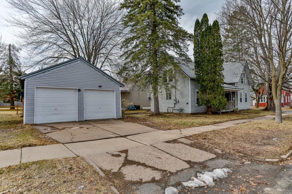Welcome to this updated 1900s home, where classic character meets thoughtful updates in a desirable Marshfield location. This spacious 1.5-story property offers 1,659 finished square feet, featuring 4 bedrooms plus 1 upper level bonus room-providing excellent space and 2 full bathrooms. Durable metal roofing on both the home and the detached 2-car garage, designed with individual single stalls. The covered front porch leads you to the front entry with door to both the dining and living spaces. Inside, you'll find a generously sized formal dining room highlighted by beautiful hardwood flooring, while much of the home has been freshly painted to create a bright, refreshed feel throughout. The main level also features a convenient laundry closet complete with an included washer and dryer.,The 18x12 living room offers a comfortable gathering space, enhanced by French doors and updated carpeting that continues into the adjacent main-level bedroom. This spacious 14x13 bedroom includes a walk-in closet with built-in organizers. The kitchen offers hardwood floors, included stainless steel appliances, and an upgraded stainless sink. A movable center island adds flexibility and extra prep space. Additional features include a storage closet and basement access to the unfinished lower level. Upstairs, a freshly painted staircase leads to a flexible layout with a walk-through bedroom featuring a large walk-in closet spanning the length of the room, an additional bedroom, and another bedroom with a connected bath showcasing an updated freestanding tub and modern fixtures. A bonus room with a walk-in closet-ideal for a guest room, office, or playroom-adds even more versatility. Situated on a corner lot, the property offers a smaller yard for easy maintenance, along with a patio area between the home and garage. With ample storage throughout and a location just blocks from Central Avenue, you'll enjoy convenient access to everything Marshfield has to offer, all within a small-town community. Schedule your showing today!