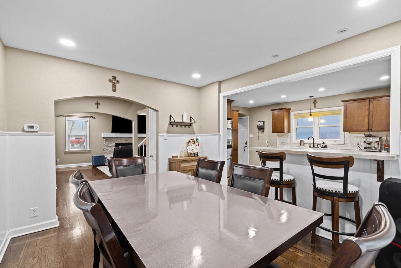 Open concept Colonial home in Milwaukee's southside Hawley Farms! This well-maintained & move-in home features hardwood floors throughout, an updated kitchen with maple cabinets, tile flooring, recessed lighting, and a breakfast bar flowing into the dining room. Spacious living room with a beautiful Lannon stone fireplace. Upper level offers 3 bedrooms, full bath, and great storage. Finished lower level includes rec room, office and full bath with walk-in shower. Enjoy a large fenced yard with new stamped concrete, oversized garage, and extra parking slab. Major updates include 2024 improvements to siding, concrete, lighting, flooring, and more. Just pack your bags and move in!
