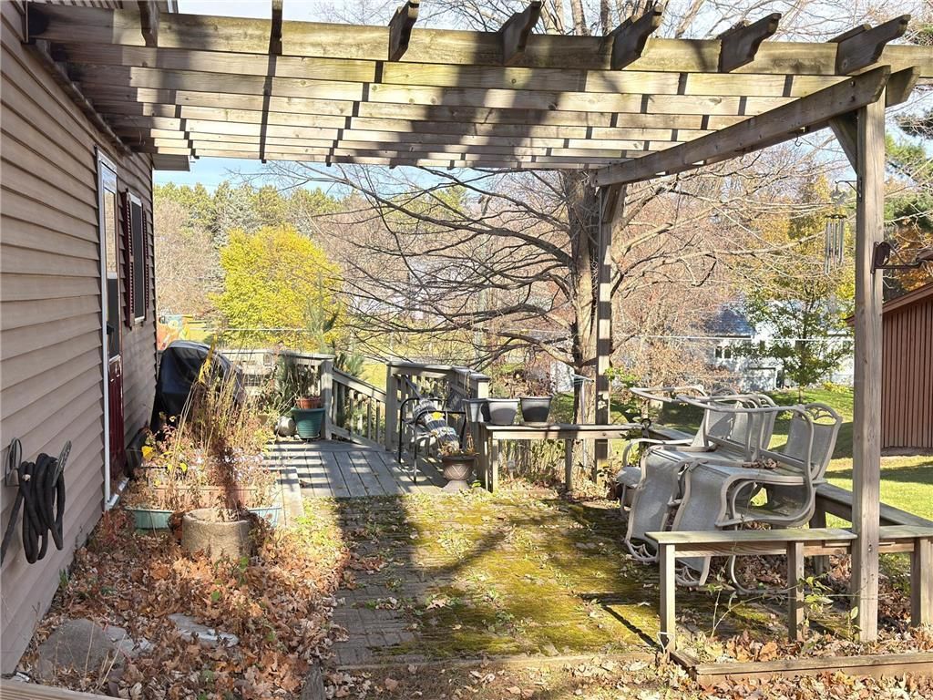 This beautiful 4-bedroom, 2-bathroom home located on a spacious corner lot in the Village of Frederic offers a perfect blend of comfort and functionality. Inside, you'll find a mix of carpet and laminate flooring, an open kitchen, and an office space ideal for remote work or additional living area. The living room features a cozy gas fireplace, while the large family room provides ample space for relaxing and entertaining. The exterior boasts maintenance-free siding, central AC for year-round comfort, and a full basement. For parking and storage, there's a tuck-under 2-car garage along with a sizable 28x32 detached, part heated and insulated garage that can accommodate 3 cars?perfect for those with multiple vehicles or hobby interests. Enjoy outdoor living on the huge elevated deck and concrete patio, both shaded by pergolas on two sides?ideal for relaxing and entertaining guests. The beautifully landscaped large yard adds to the property's appeal, making it a great place to call home.