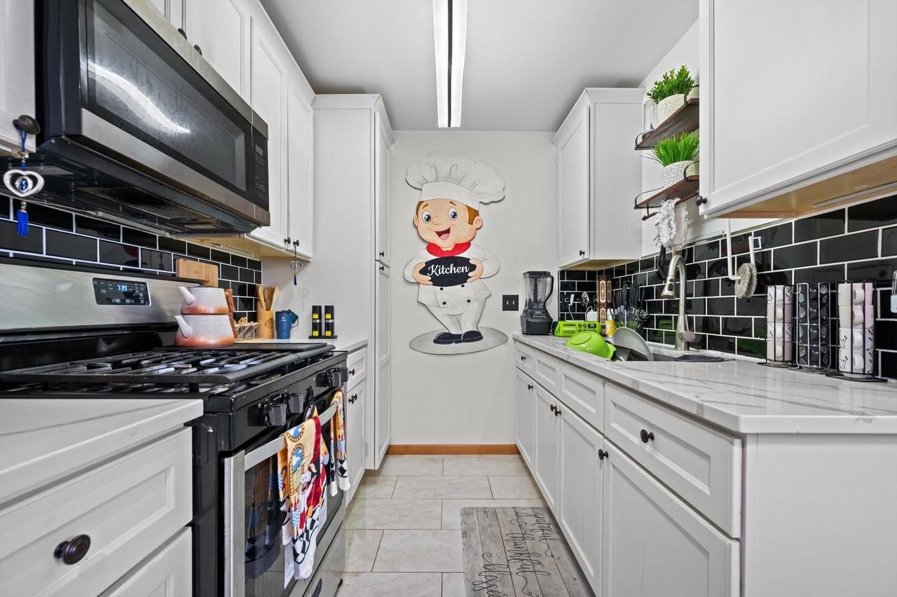Nicely updated two-story condo in Willow Creek! Kitchen features subway tile backslash, quartz counters, and beautiful tile flooring stretching through the dinette and down the hall to the huge living room. New front entry door, nest thermostat, fixtures, and A/C with 10-year warranty. The upper level offers a remodeled full bath and two bedrooms with replacement windows (lifetime warranty) and two double wardrobe closets with new mirrored doors in the primary. Full basement for ample storage and additional living space.