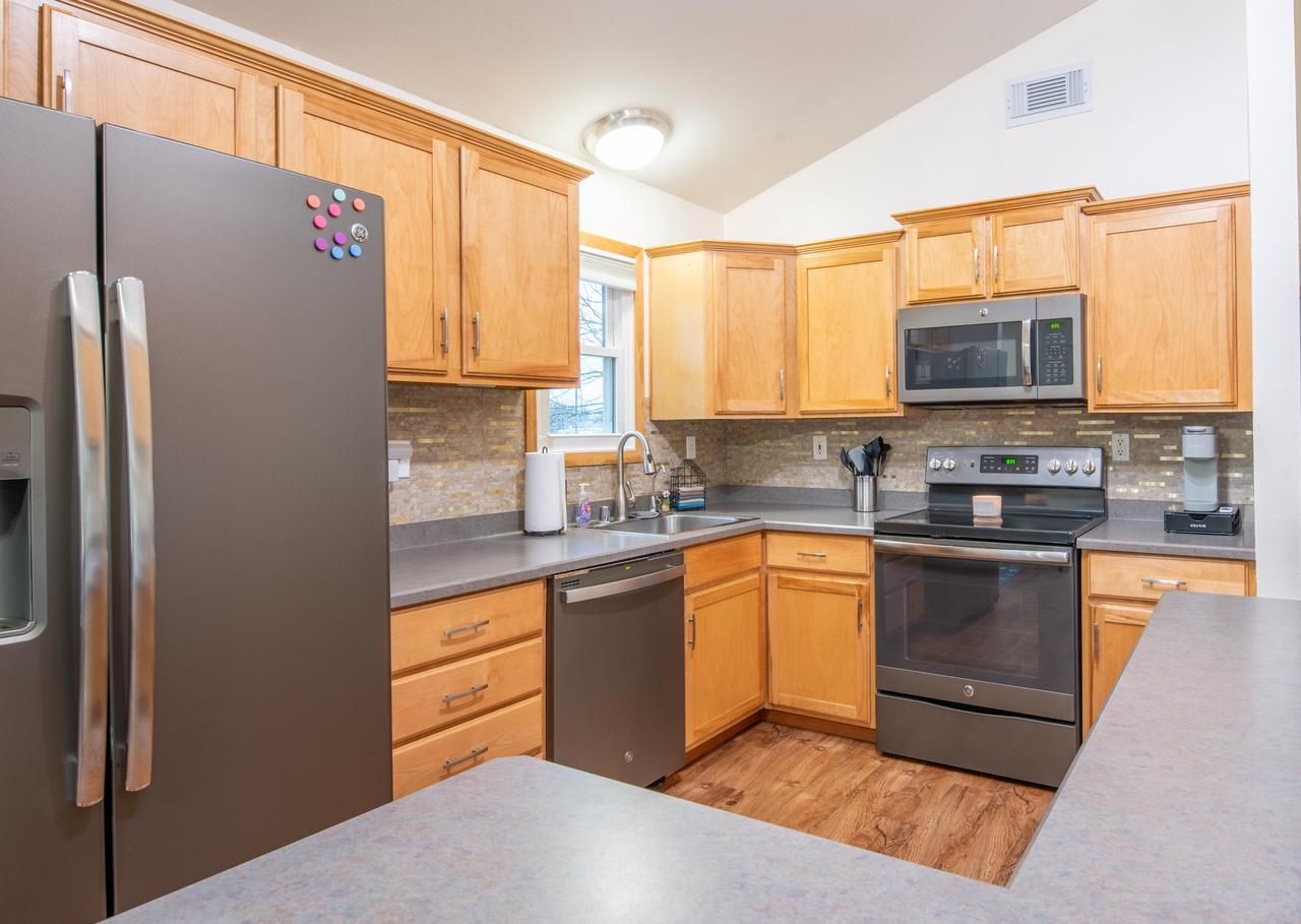 Open-concept raised ranch on a 3/4-acre lot in Hidden Lakes, offering low Vernon taxes and Mukwonago School District. The living room features a cathedral ceiling, while the kitchen offers updated cabinetry and new luxury vinyl plank flooring. The lower-level family room includes a natural fireplace and walkout access. This home offers four spacious bedrooms, two remolded full baths, and tasteful decor throughout. Enjoy the raised deck overlooking the large park-like backyard, plus a large patio ideal for entertaining and summer barbecues. Outdoor storage shed included. Hidden Lakes HOA amenities feature a no-wake lake for small boats and swimming, along with a playground, recreation, and picnic area.