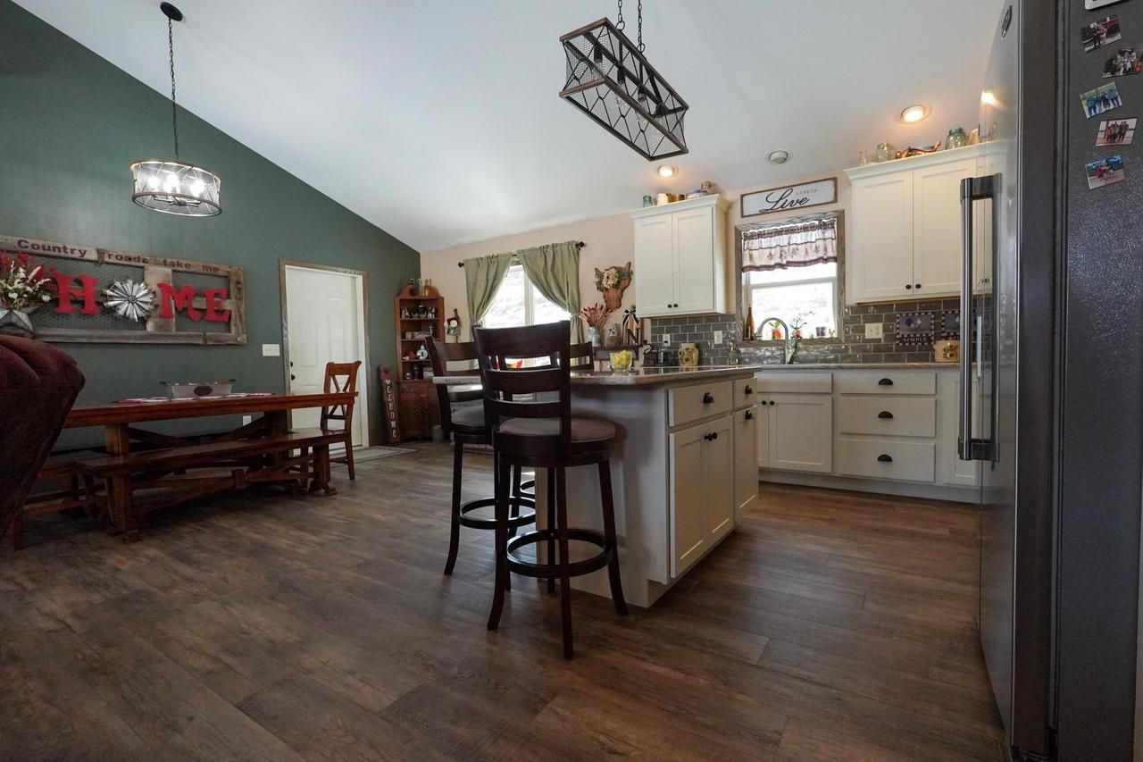 Private 2 bedroom, 2 bath country ranch home on +/-30 wooded acres with a wildlife pond. Open concept design with cathedral ceilings. Kitchen with Cambria countertops, subway tile backsplash, island with breakfast bar and a walk-in pantry. Master suite with walk-in closet and private master bath with an oversized tub. In-floor heat in the house and attached 2 car garage. Large covered porch with water and yard views. +/-30 acres of land with abundant wildlife and excellent hunting opportunities. Refrigerator, stove, microwave, dishwasher, washer, dryer, water softener, window coverings, garage refrigerator, yard shed and row boat are included in the sale price.